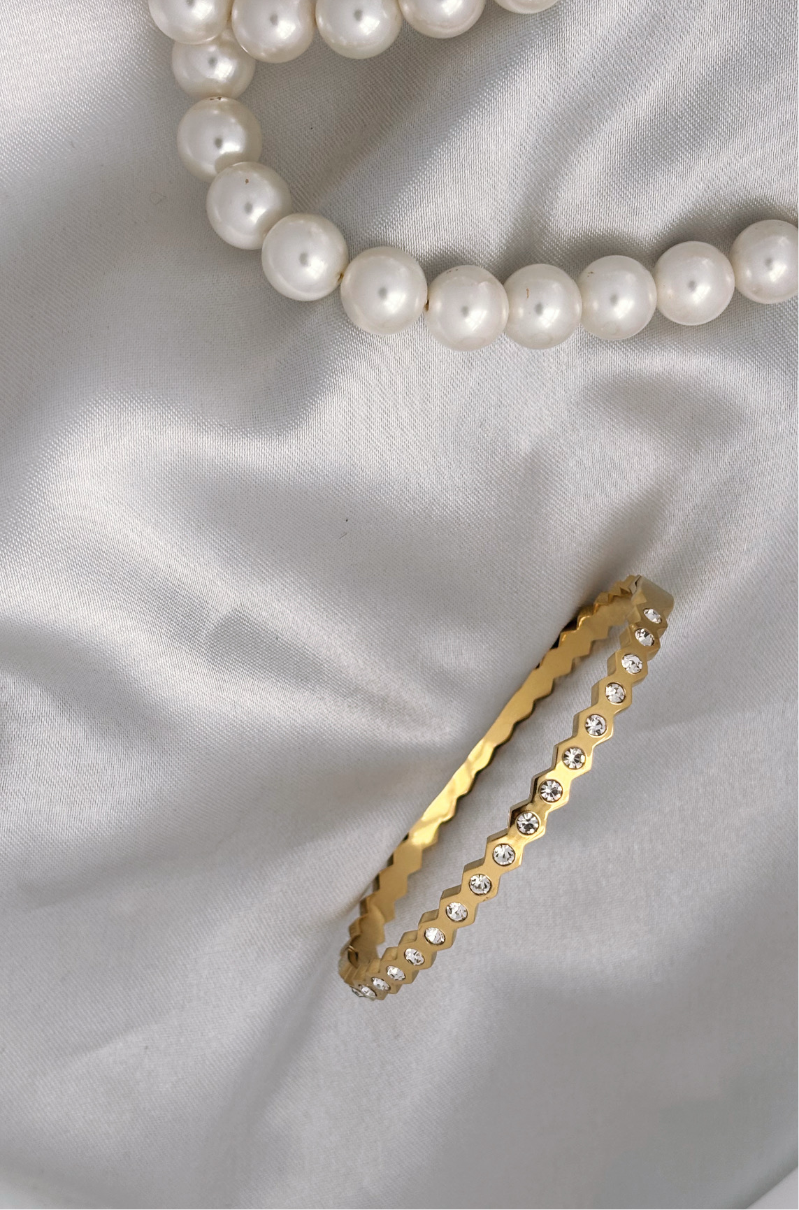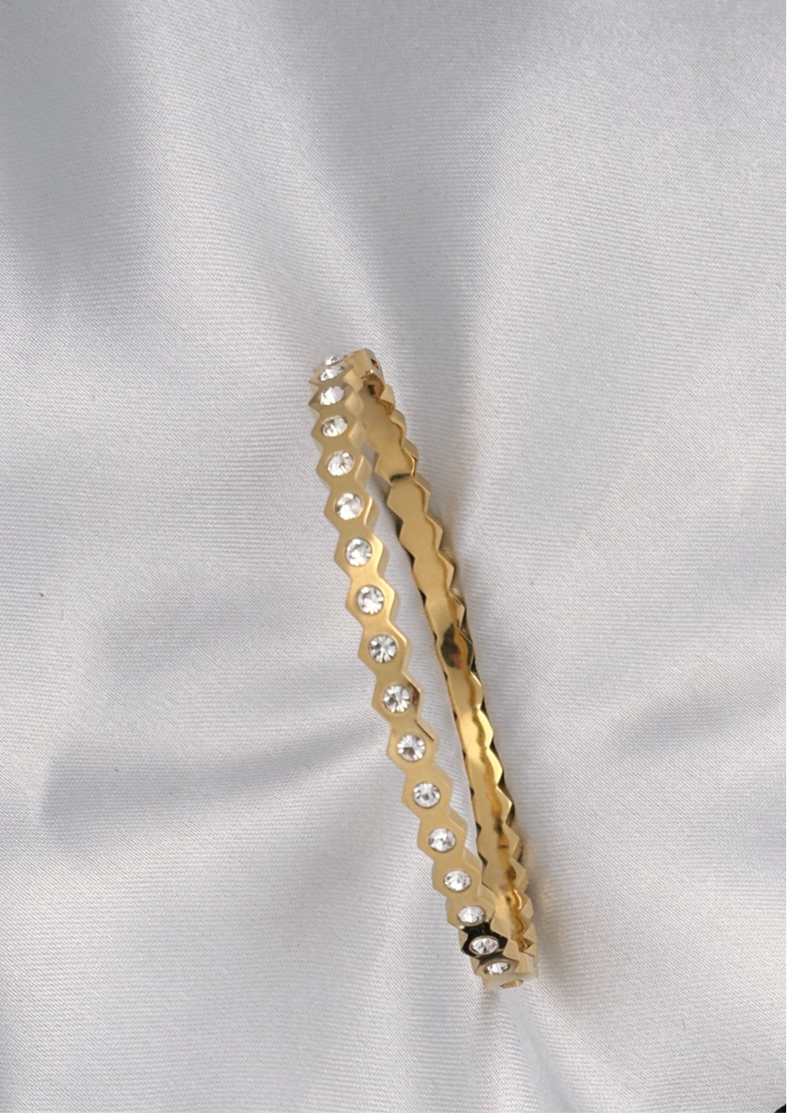 Add a touch of modern sparkle to your collection with the Multi-Stone Cuff. This elegant piece stands out with its unique scalloped silhouette, where each peak is adorned with a brilliant, shimmering crystal. It’s the perfect blend of playful geometry and timeless elegance, designed for effortless everyday wear.