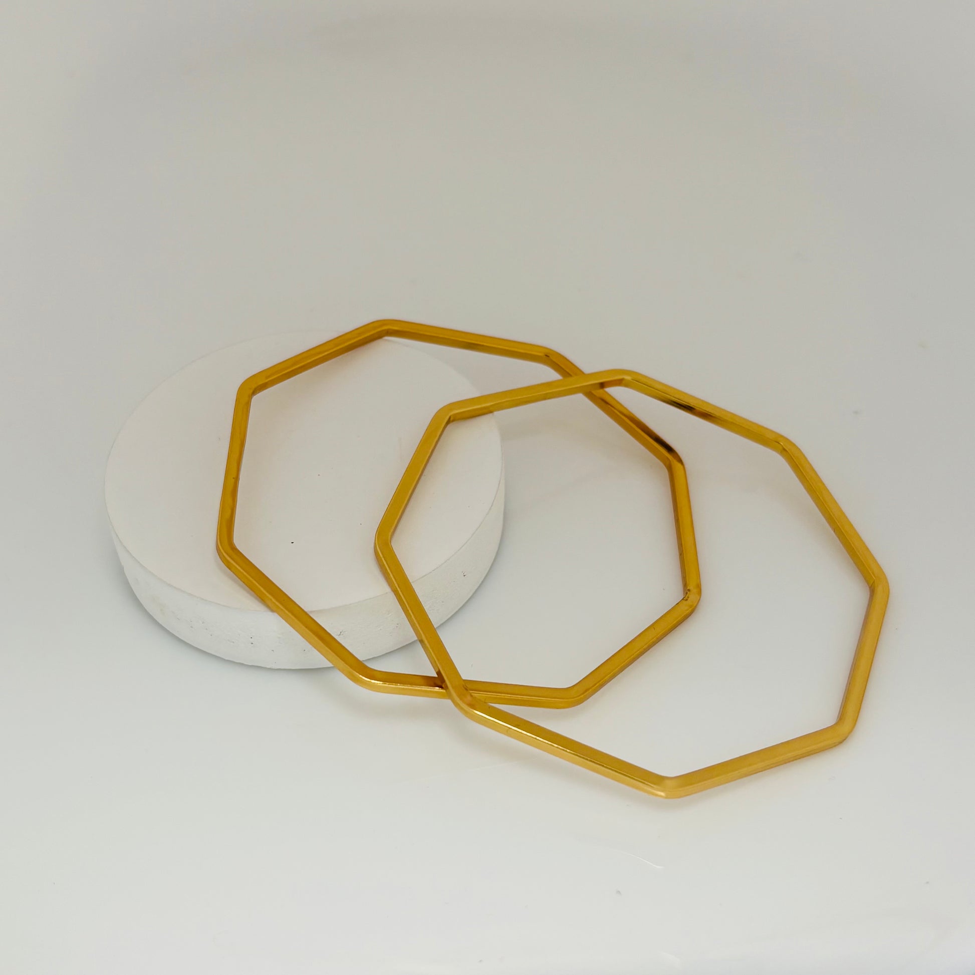 Discover the intersection of sharp geometry and sleek design with the Octaglow Bangles. This stunning pair, defined by its unique octagonal shape, offers a contemporary twist on a classic accessory. Crafted for durability and style, they are the perfect finishing touch for the modern woman who values both form and function.